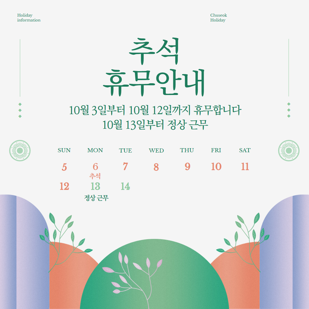 25년 추석 연휴 휴무 공지 페이지 정보 작성자 관리자 댓글 0건 조회 114회 작성일 25-10-01 14:59 본문 목록 이전글 ThinkWise 웹버전 서버점검 안내 [10/13(월) 19:00] 25.10.02 다음글 ThinkWise X 교원캠퍼스, 디지털 마인드맵 온라인 연수 안내! 25.09.01